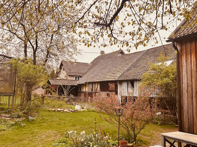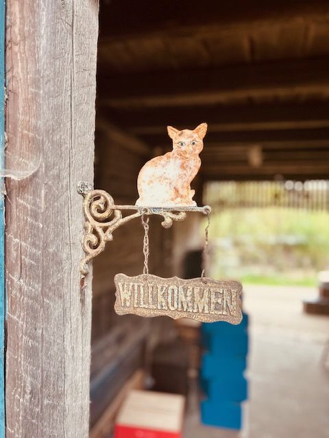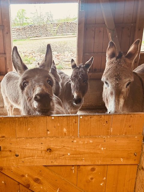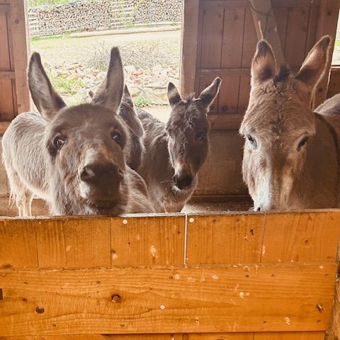 Schockverliebt war ich in die Eselbande, die Menschenkontakt liebt, ausgesprochen verkuschelt ist, und auch therapeutisch eingesetzt wird. Es gibt Katzen, Laufenten, Kaninchen, jede Menge Bienen, Hühner, der Garten ist so angelegt, dass verschiedene Aktivitäten angeboten werden können, es gibt einen alten Backes, wo mit den Familien Brot und Kuchen gebacken wird usw.