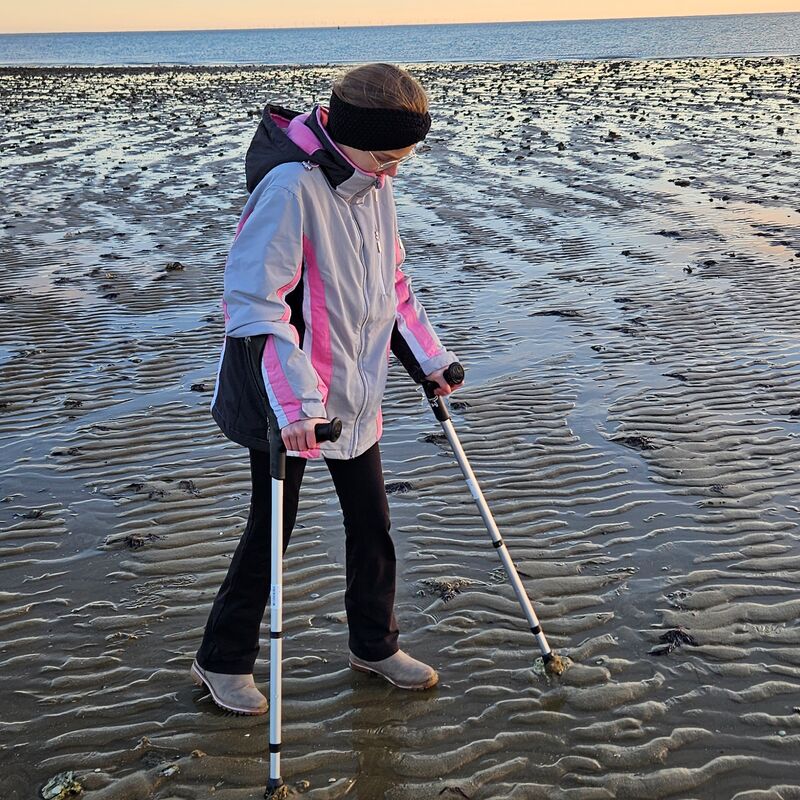 Dennoch ist Sophie weiterhin auf den Rollstuhl angewiesen und kann nur kurze Strecken mit Unterarmgehstützen zurücklegen. Zudem sieht sie Doppelbilder, da die Sehnerven geschädigt sind und die Augenmuskulatur infolge der Schlaganfälle noch immer beeinträchtigt ist. Sophie hat Pflegegrad 5.
